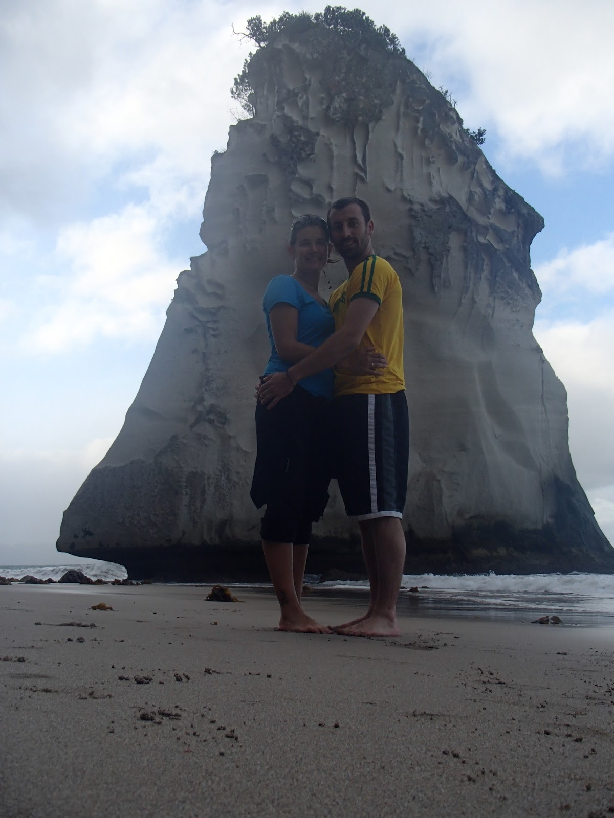 Le deuxieme jour, nous filons a Cathedral Cove, une immense falaise creusee par la mer ou la ballade et la vue sont tres sympas. Puis nous continuons vers Hot Water Beach, une plage ou se trouvent des courants d'eau chaude souterrains. L'eau sort a plus de 60 degres! Nous trouvons un petit endroit ou passer la nuit et nous nous reglons a l'heure "Jean-Mi' : couches a 22h et leves a 6h30 pour pouvoir profiter de la journee car ici le Soleil se leve tot et se couche tot!